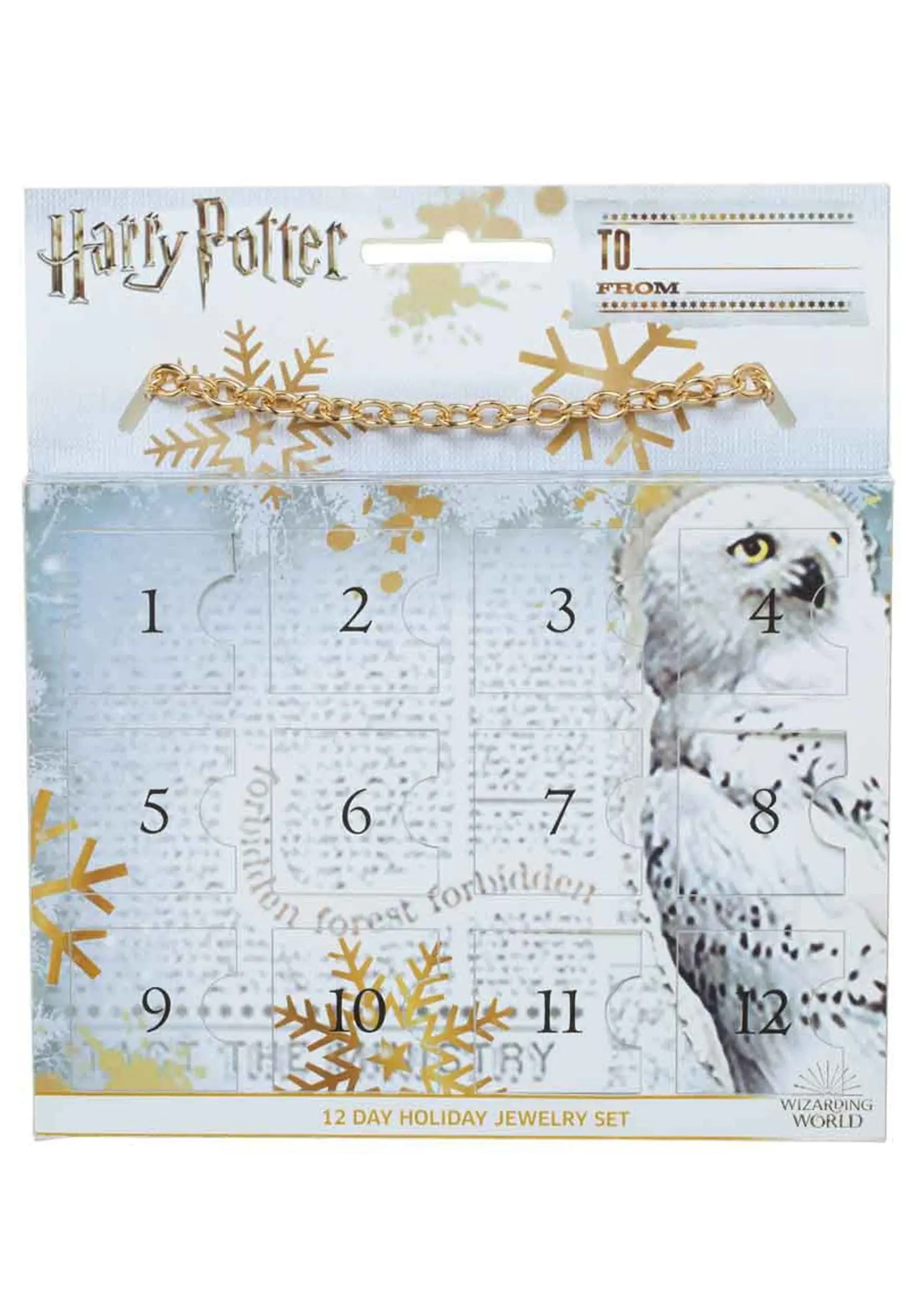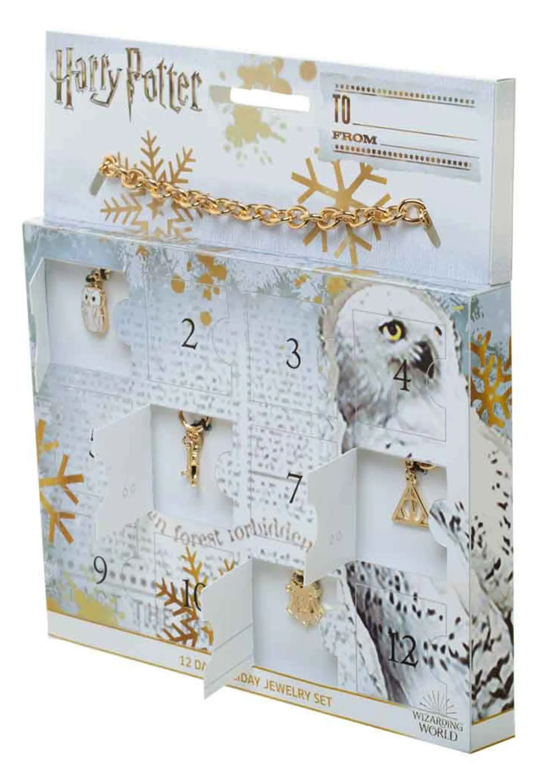 Treat yourself to a magical 12 days of Christmas spirit when you order this Harry Potter Holiday Countdown Jewelry Set! The licensed gift set comes with 12 unique Potter-themed pieces hidden behind perforated doors. Open one per day to enjoy a different surprise for 12 days leading up to Christmas Day. Or gift the enchantment to a fan to charm them just the same!