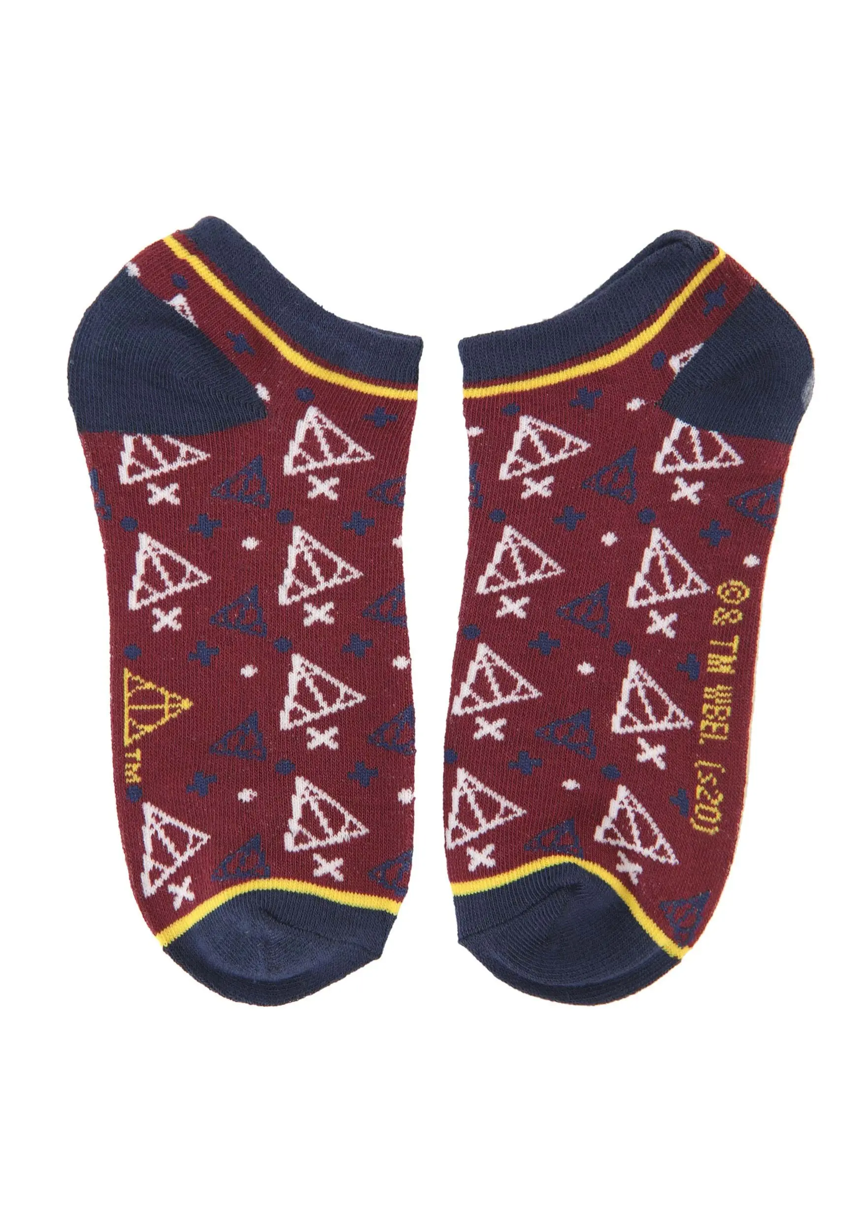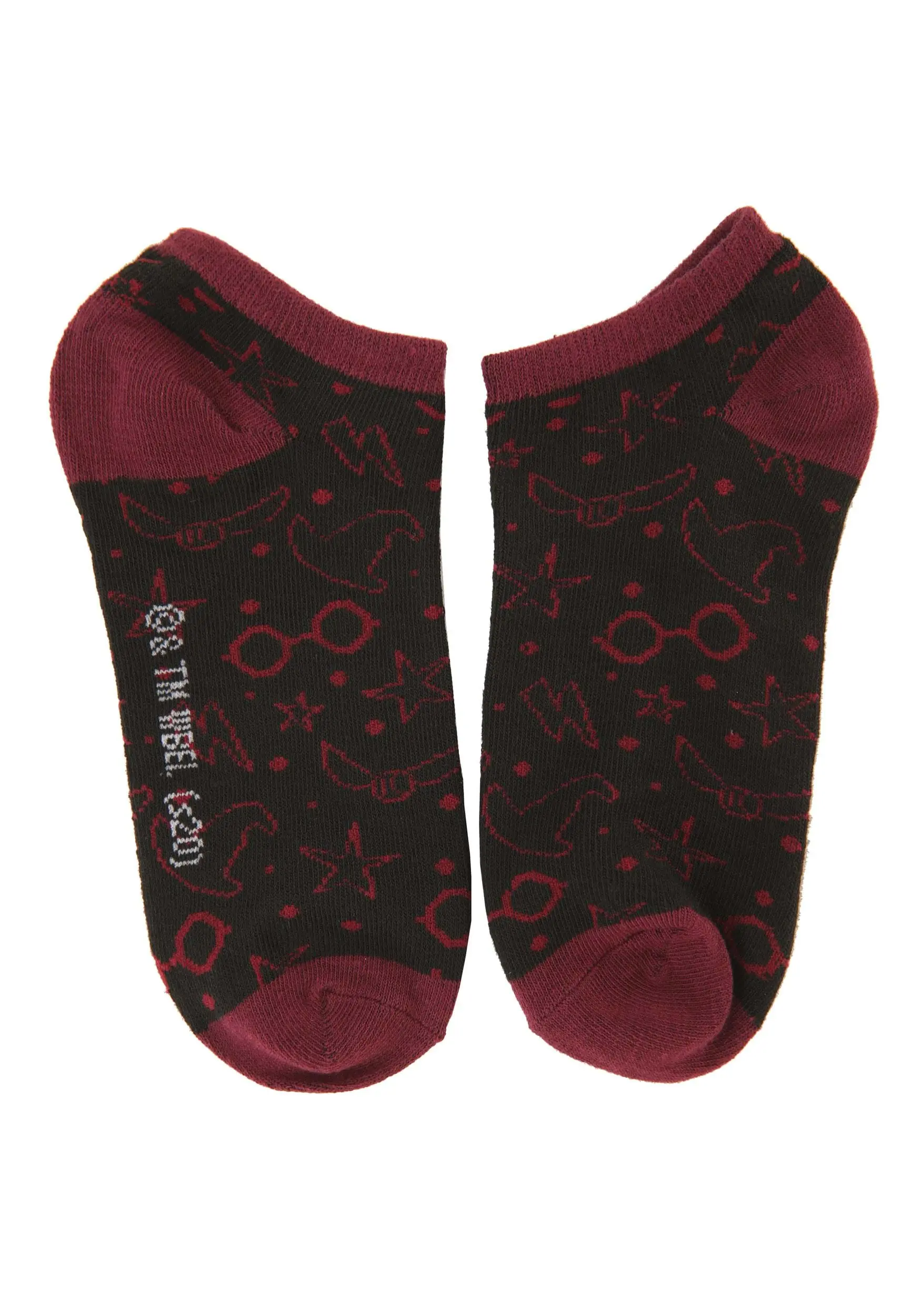 Keep your feet warm with this officially licensed 6 Pack of Harry Potter Maroon Ankle Socks for Women! Each pair features magically fun Harry Potter graphics, including Hedwig’s face, a Golden Snitch, the symbol for Platform 9 3/4, and more.