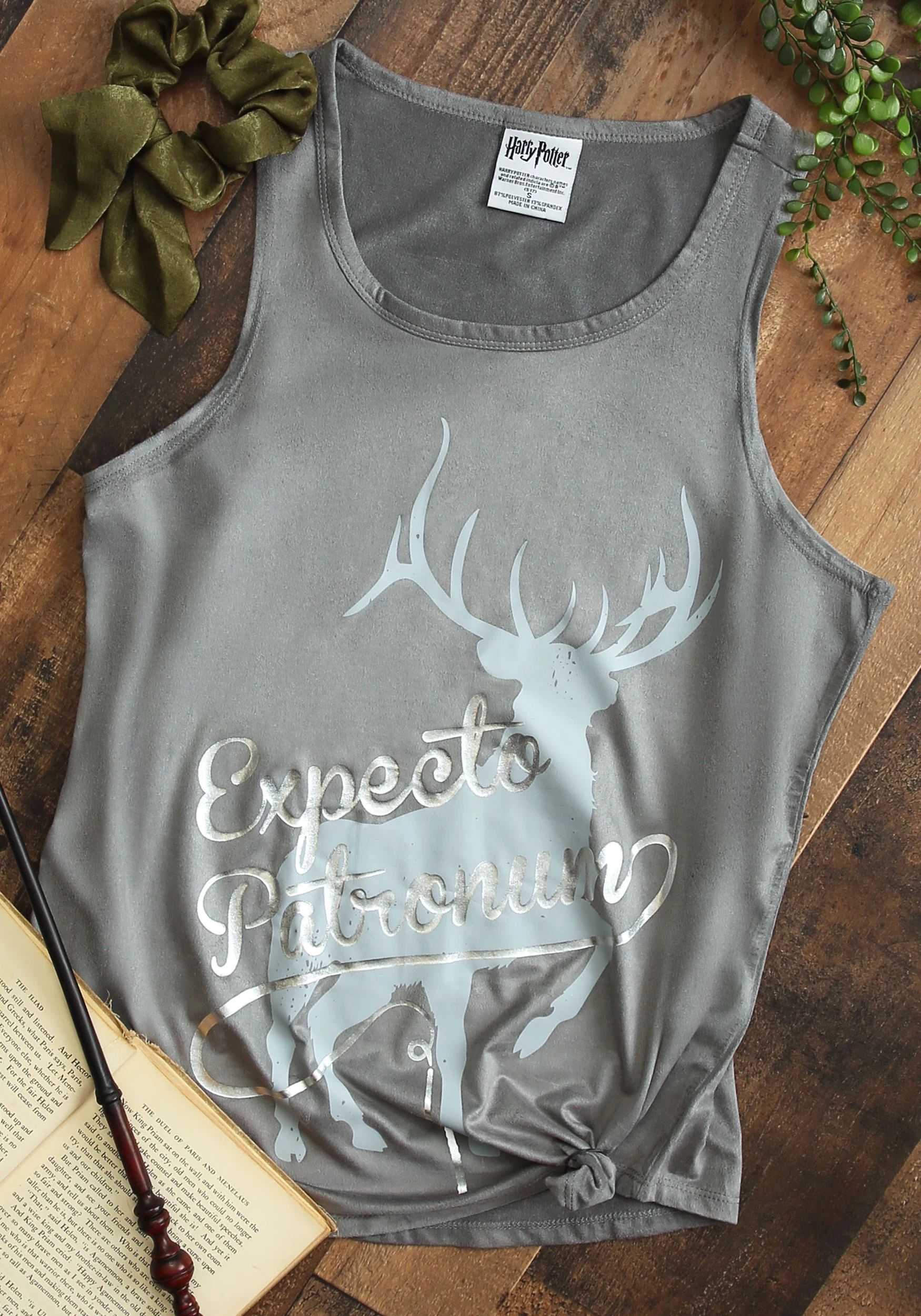 Okay, we admit that very few fans of the Wizarding World are going to forget the enchanting words needed to call upon a spiritual protector to banish away the dread of dementors and their evil ilk. But, it does require concentration upon a happy memory, too. Whether you have trouble remembering the incantation or need an idea for that memory, try this Expecto Patronum Harry Potter Tank shirt. Whose heart doesn’t swell when thinking about Harry meeting his Stag Patronus!?