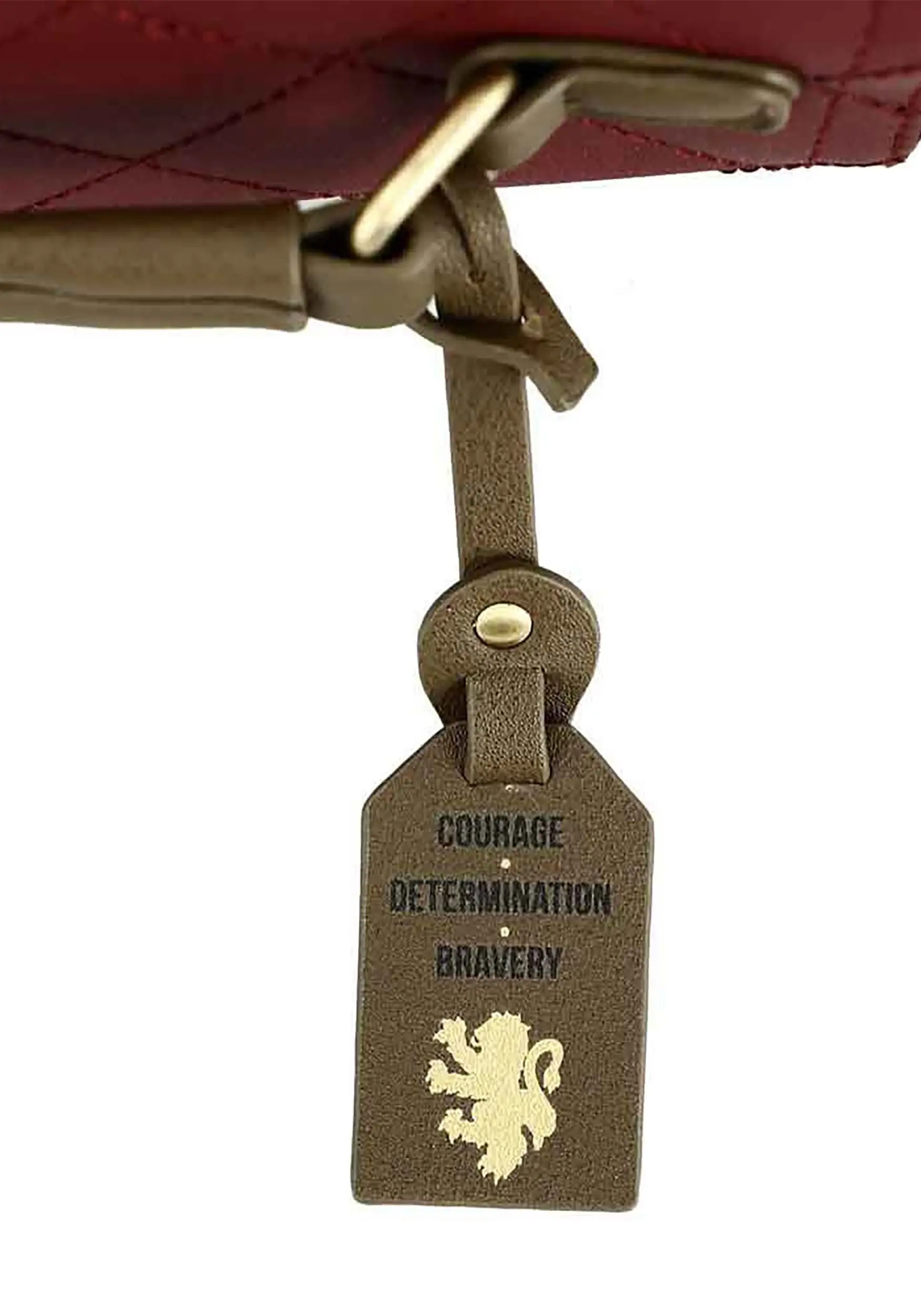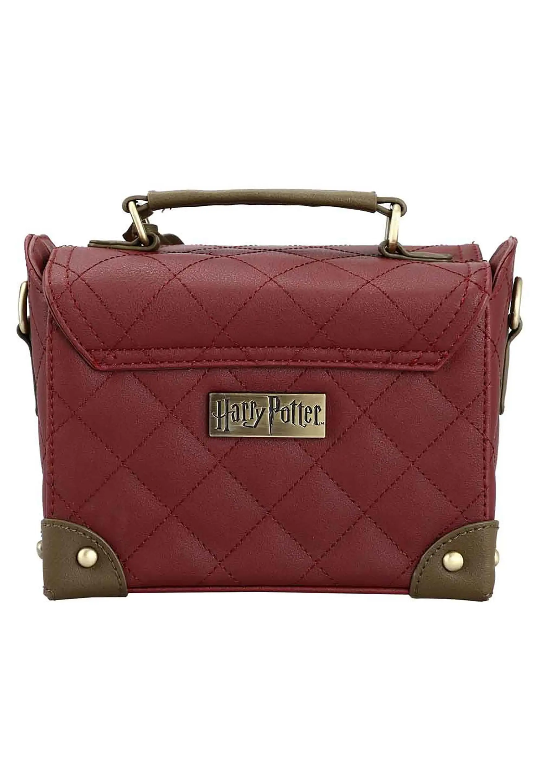 Travel on the Hogwarts Express with a perfectly packed trunk labeled with your house emblam and colors. Its quilted design and corner details fool the eye into thinking it really is a wizard-worthy trunk! It’s only once you get up close that you realize it’s actually a handbag. A short handle lets you carry it in with ease, while a shoulder strap can be used for hands-free shopping. There’s plenty of room inside to hold your potion bags, wand, and paperback spellbooks. The lion-shaped clasp cover is labeled with a tastefully sized “Gryffindor” label. On the back you’ll find a plaque marking it as an officially licensed Harry Potter product.